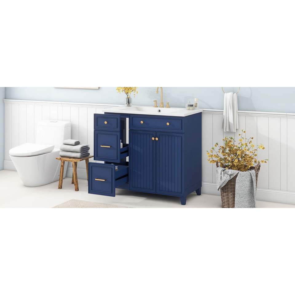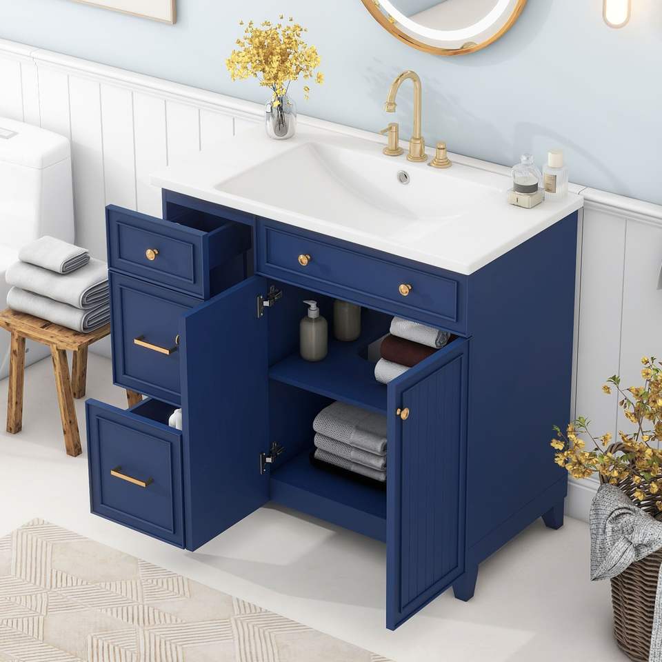 Mobile Bagno Stile Transizionale da 36 Pollici con Lavabo in Resina, Mobiletto Singolo con 2 Cassetti e 1 Ripiano Regolabile