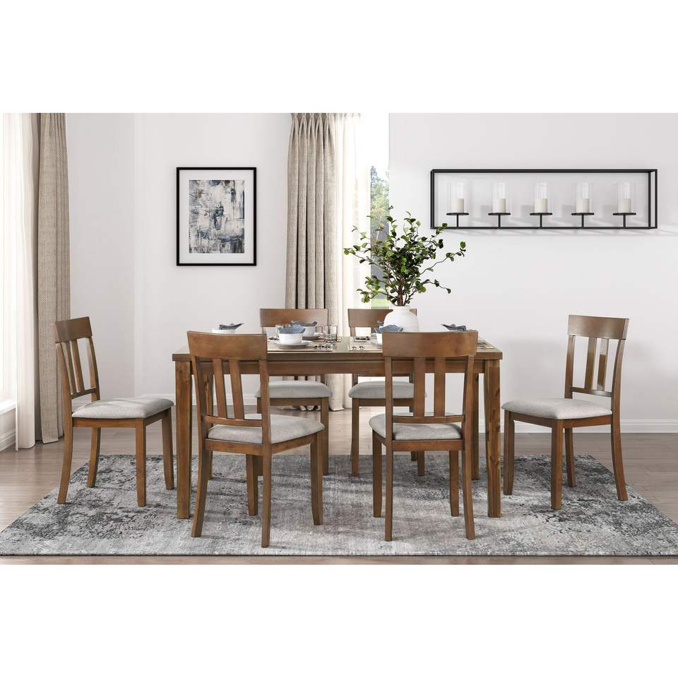 Set da Pranzo in Stile Transizionale 7 Pezzi, Finitura Ciliegio, Tavolo da Pranzo e 6 Sedie Laterali con Sedili Imbottiti in Tessuto Texturizzato