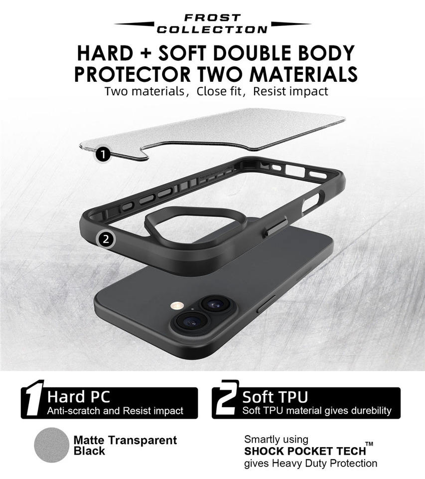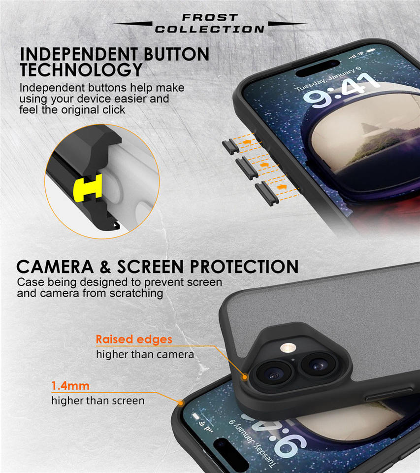Translucent Mobile Phone Case Anti Shock Black Matte TPU PC Phone Cover for iPhone 16 Plus 15 14 13 12 Pro Max