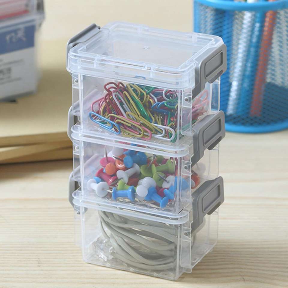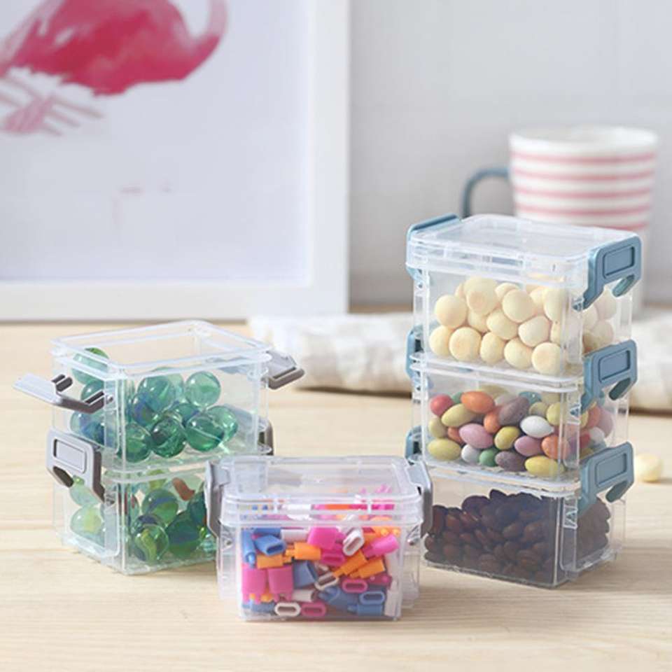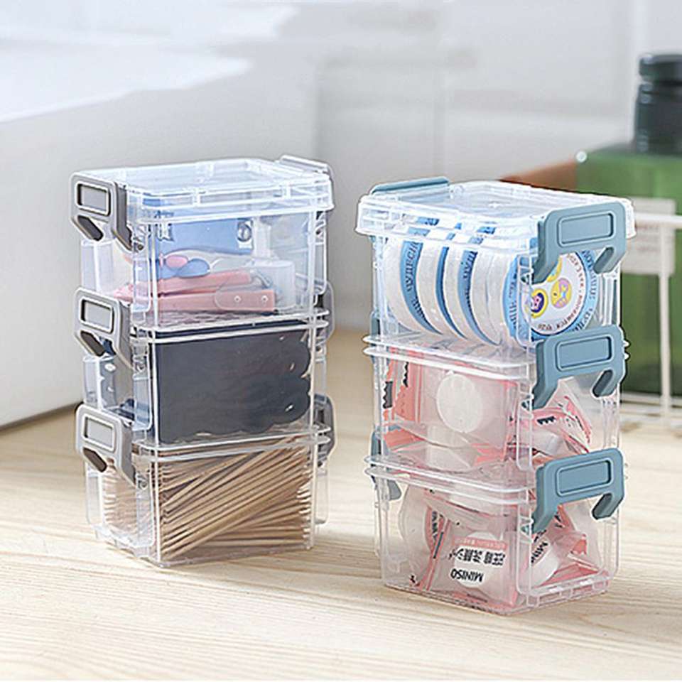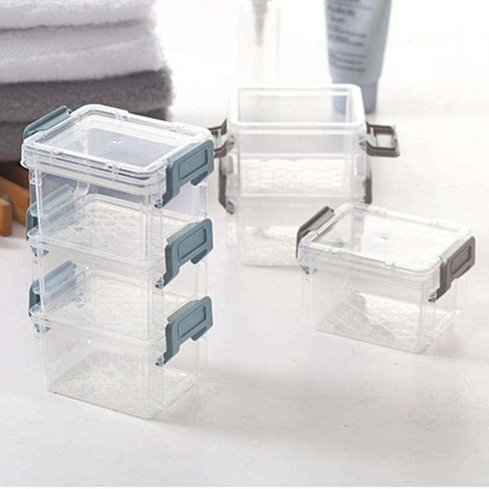 Scatola di Plastica Trasparente a 3 Strati con Coperchio, Contenitore Portatile Impilabile per Ufficio e Casa
