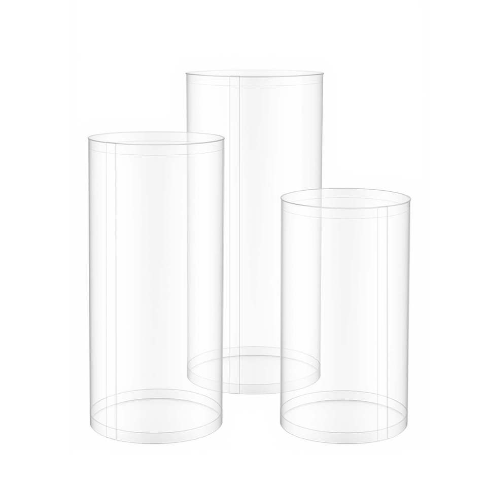 Transparent Acrylic Cylinder Pedestal Stand for Weddings Parties Birthdays 3pcs Set 23.62/29.53/35.43 Inch Clear Pedestal Decor