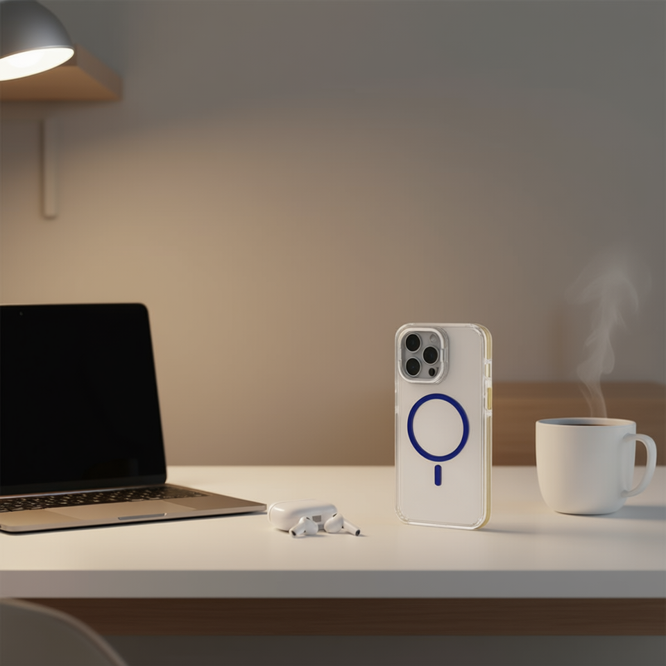 Custodia Trasparente in Alluminio con Supporto ad Anello Magnetico per Telefono Cellulare