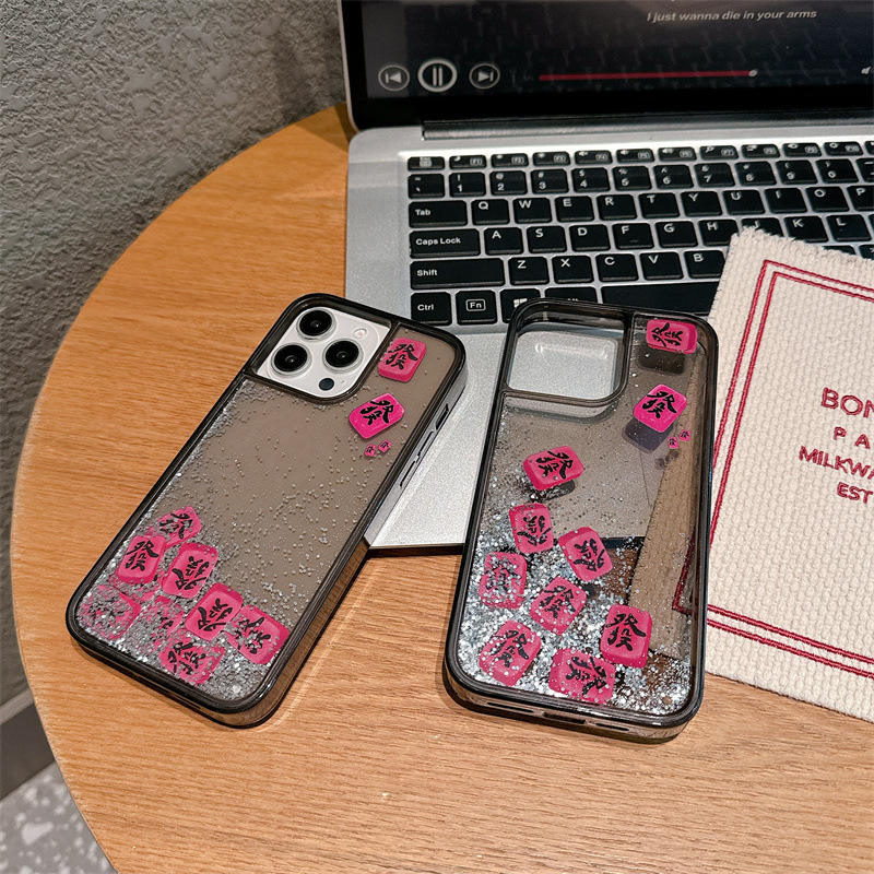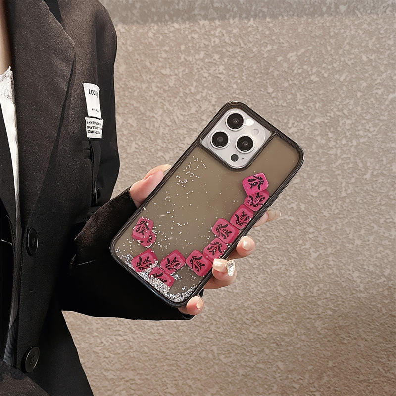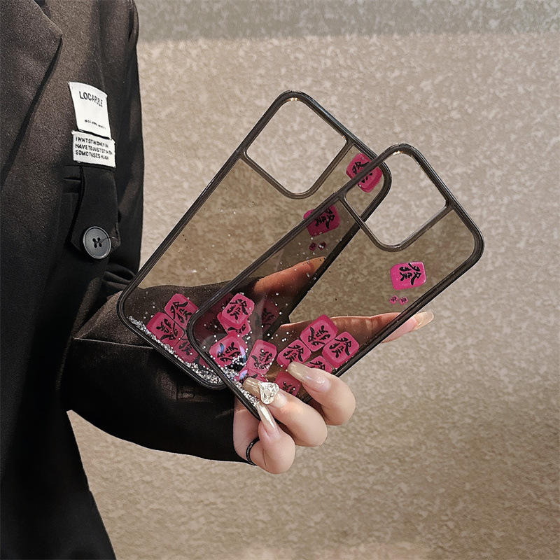 Trasparente nero acrilico sabbie mobili guscio scivolo per fortuna adatto per iPhone16 promax Apple 15 anti-caduta custodia del telefono cellulare