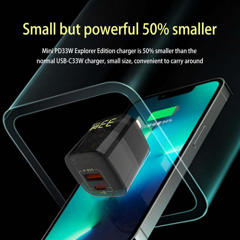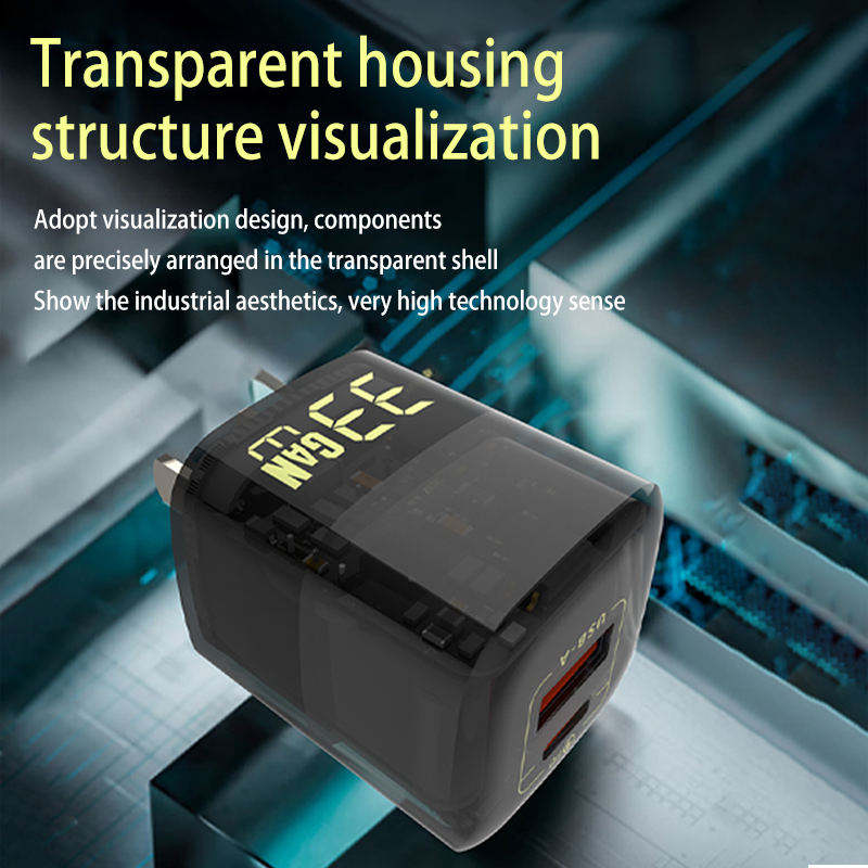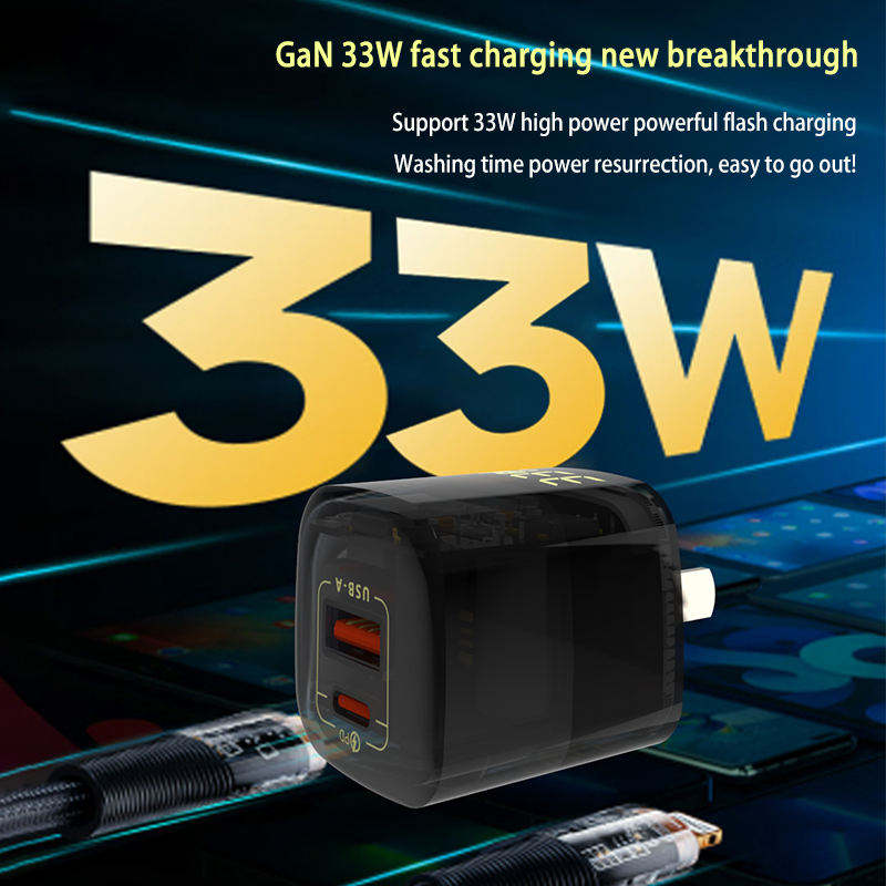 Trasparente nero PD 33W tipo-C adattatore del caricatore del telefono USB tipo C caricabatterie veloce da parete di ricarica per IPhone 14 per Samsung Galaxy