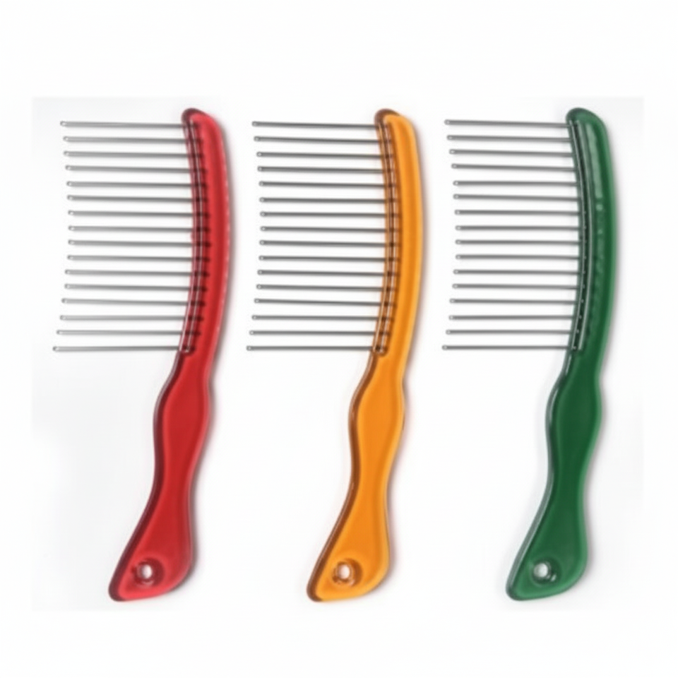 Pettine in ferro Pama di colore trasparente pettine per massaggio a denti larghi di grandi dimensioni con manico in plastica per uso salone 2-acquisto richiesto