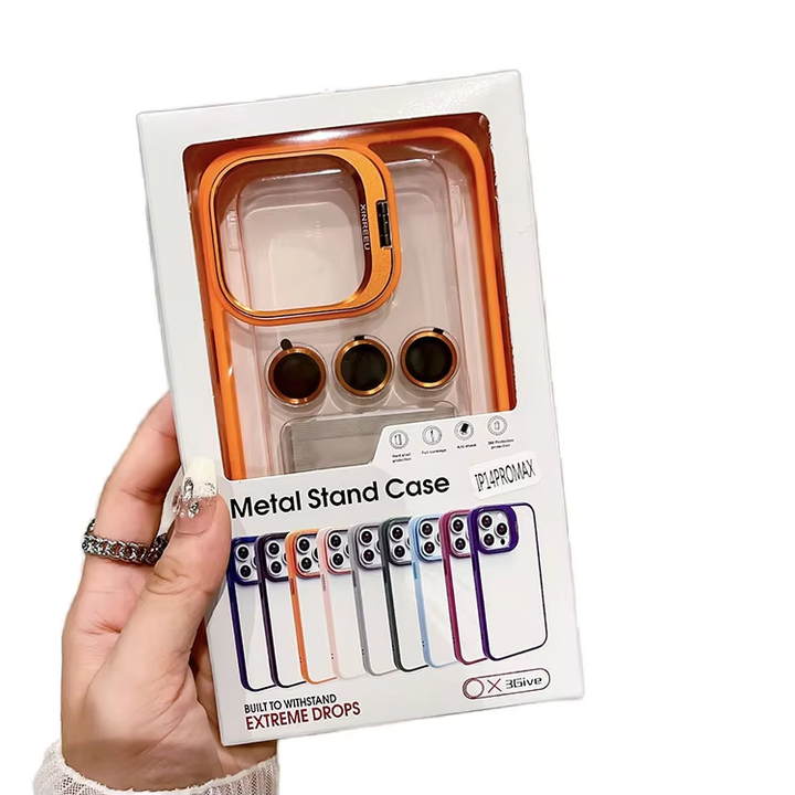 Cover trasparente per iPhone 17 16 15 14 13 12 Pro Max pieghevole in metallo porta obiettivo in vetro custodia per telefono