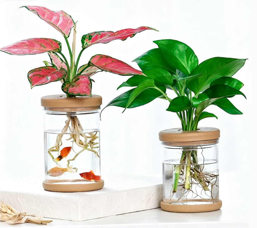 Vaso idroponico trasparente simile al vetro per piccole piante, piante verdi in vaso, plastica resistente, logo/design personalizzato stampato