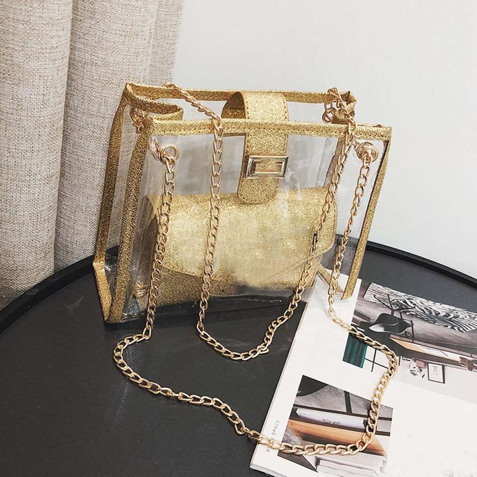 Nome:PVC trasparente Oro Argento Catena Master Delle Donne del Sacchetto di Singolo Sacchetto di Spalla