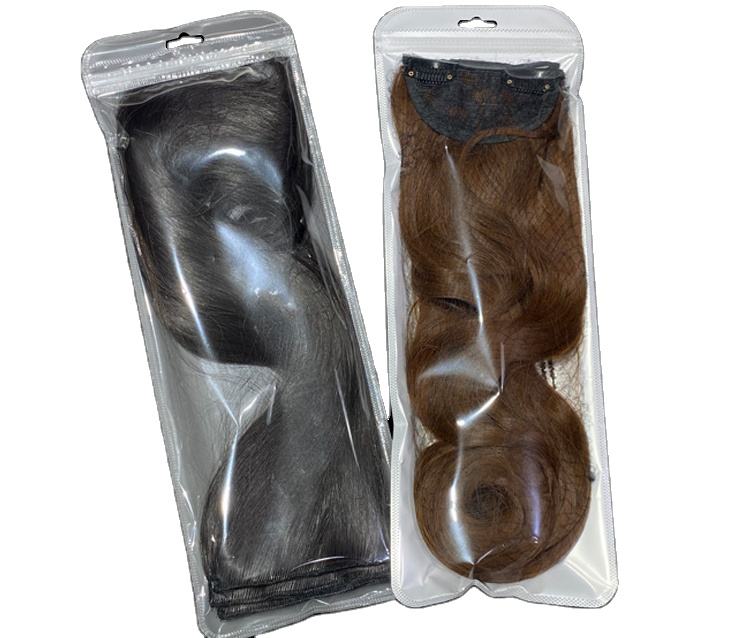 PVC trasparente extension borse con chiusura a bottone, capelli extens in plastica