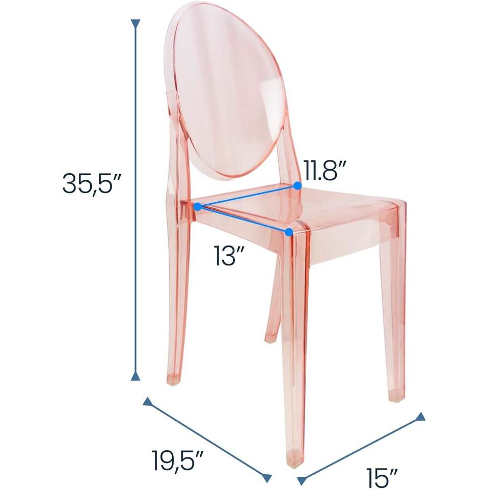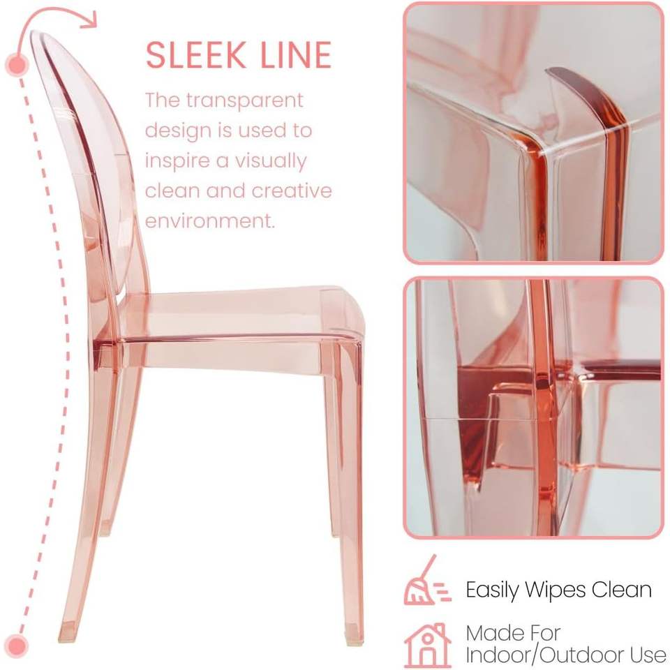 Set di 4 Sedie Ghost in Plastica Trasparente - Sedie Moderne Rosa per Sale da Pranzo ed Eventi
