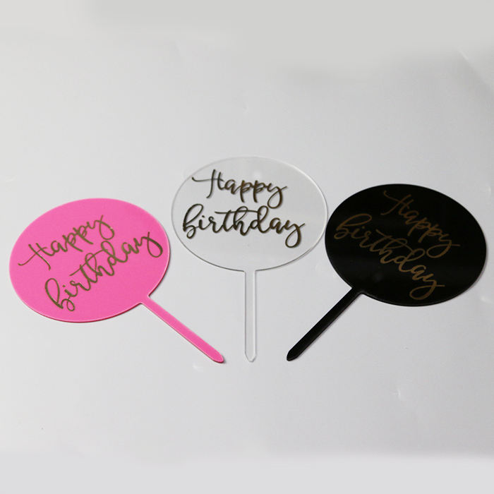 Trasparente Rotondo Festa di Compleanno Cake Topper Acrilico Con Stampa A Caldo LOGO