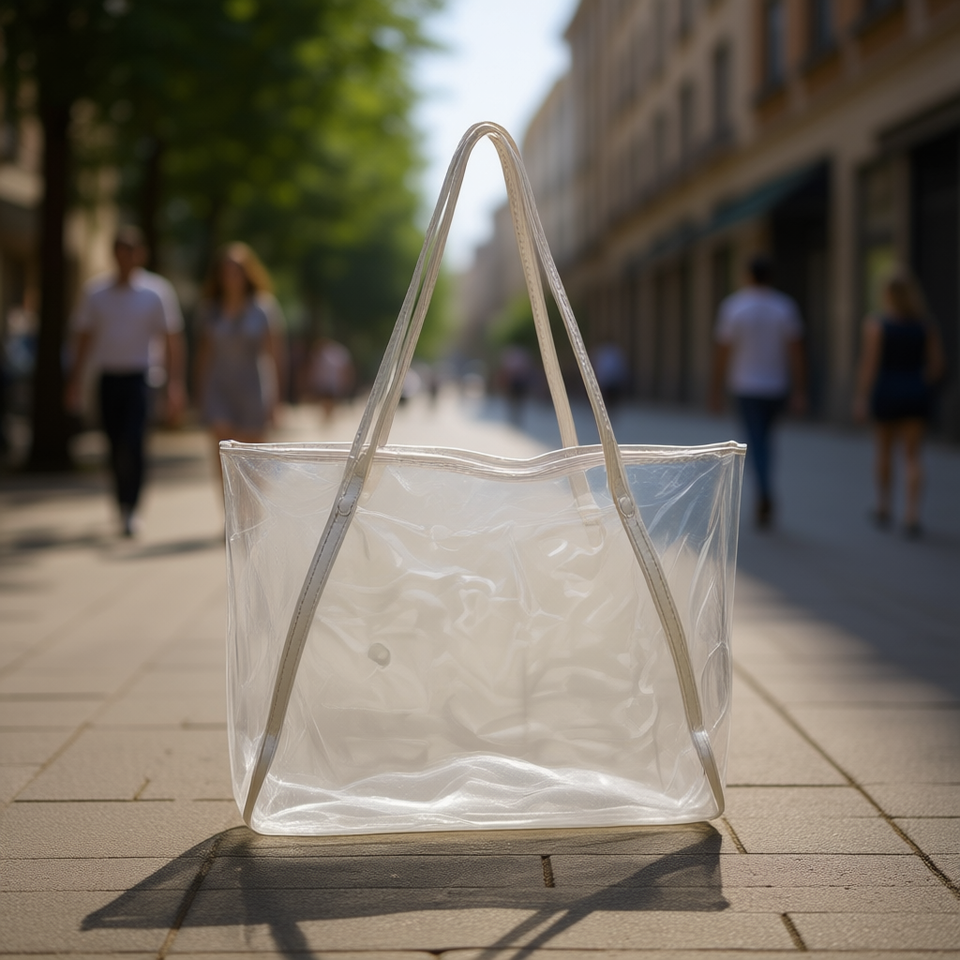 Borsa a tracolla trasparente 52x36x13 cm in materiale PU con tracolla per riporre il cellulare