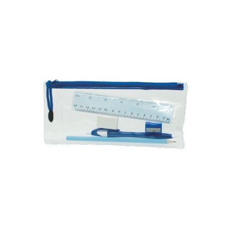 Transparent Stationery Set Case with Ballpoint Pen Pencil Ruler Eraser Pencil Sharpener