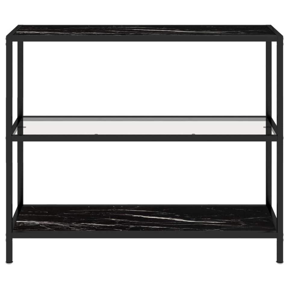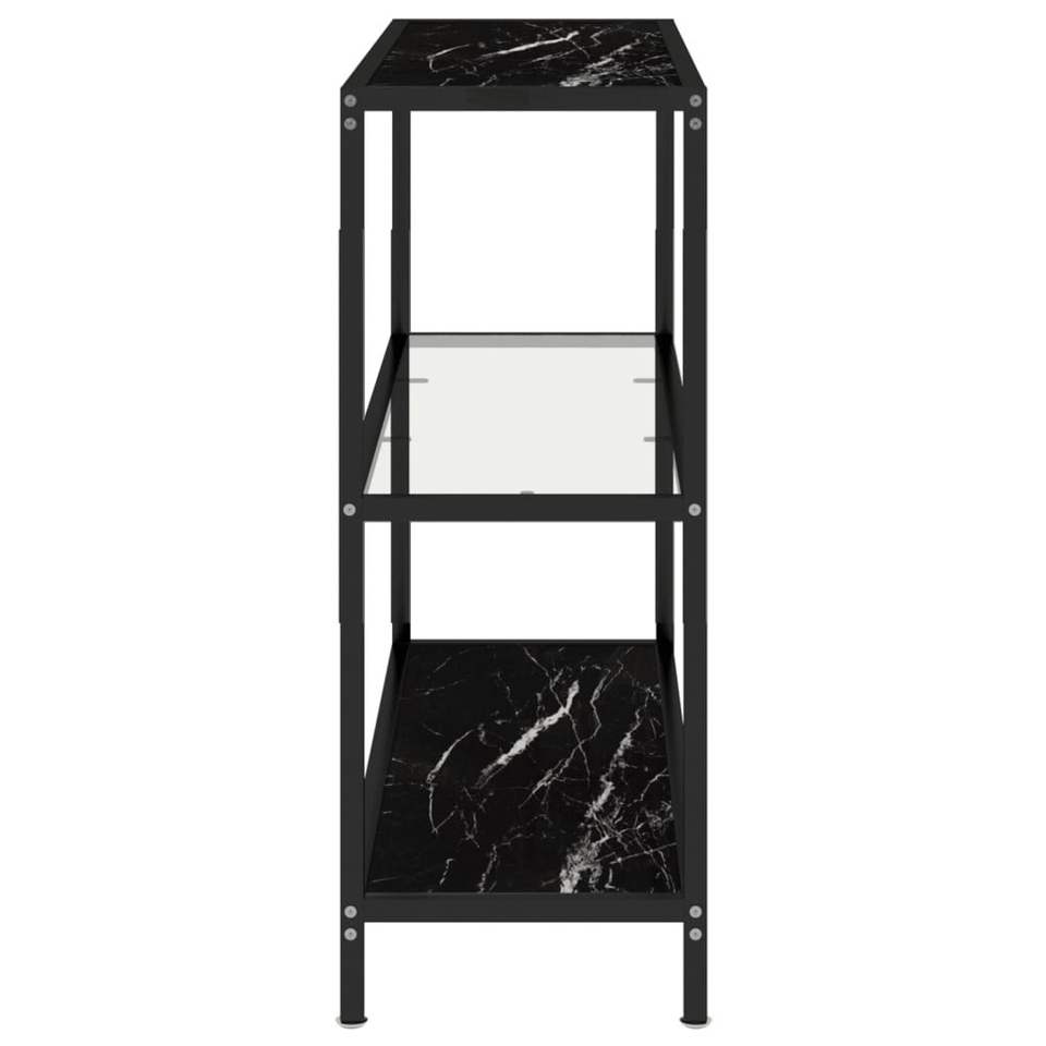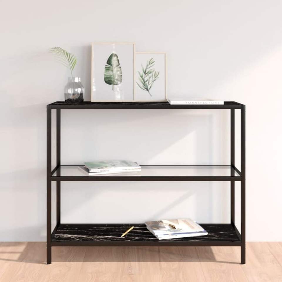 Transparent and Black Marble Tempered Glass Bookcase with Powder-Coated Iron Elegant Shelf for Home Office Use