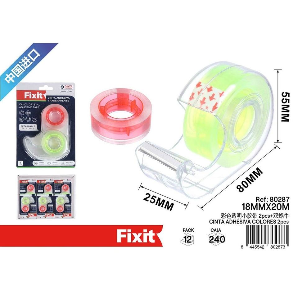 Transparent colored adhesive tape - 18mm x 20m - 2 units