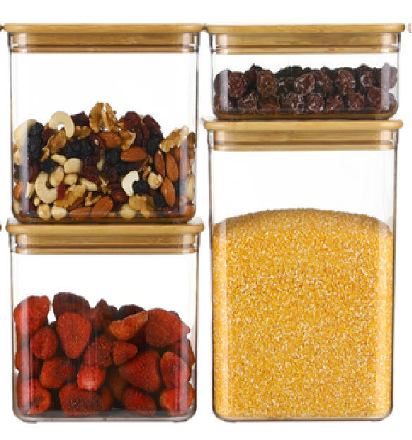 Barattolo di plastica con il coperchio di bambù, 1pc/pe bag, 1set/1 scatola, o come cliente