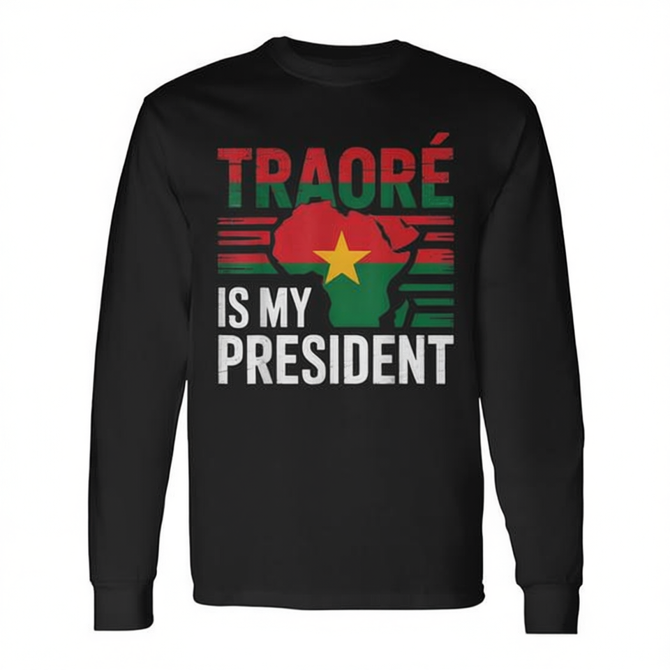Traore è il mio presidente Burkina Faso T-shirt a maniche lunghe