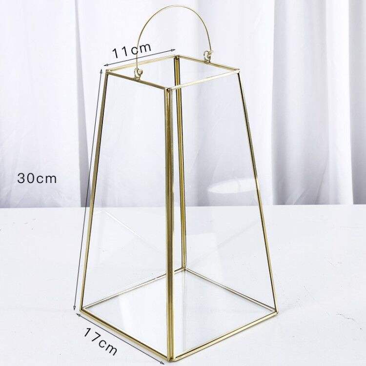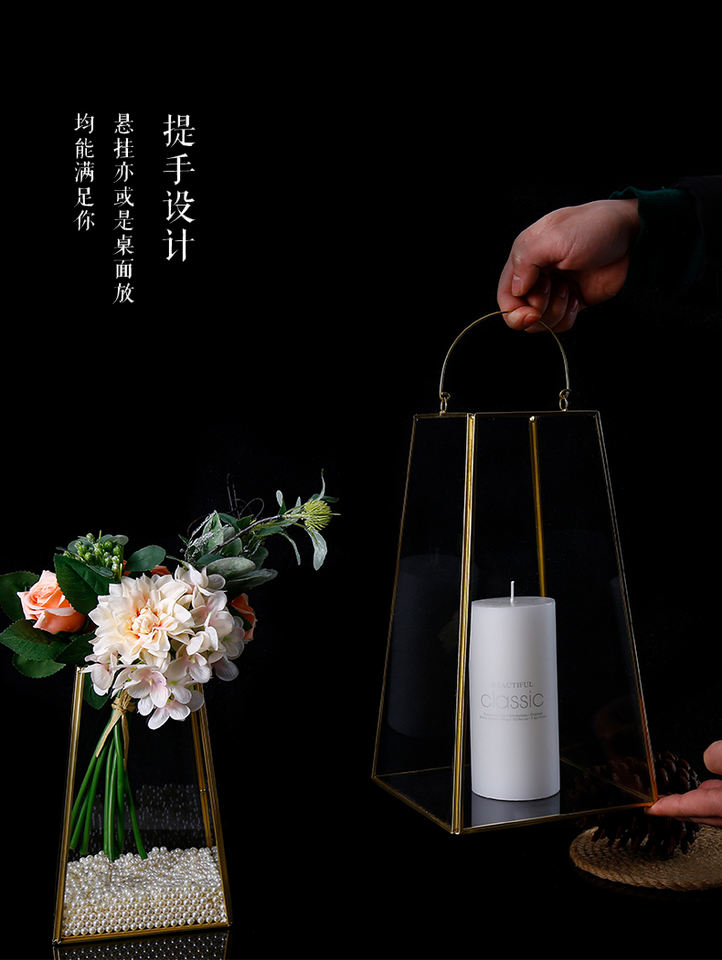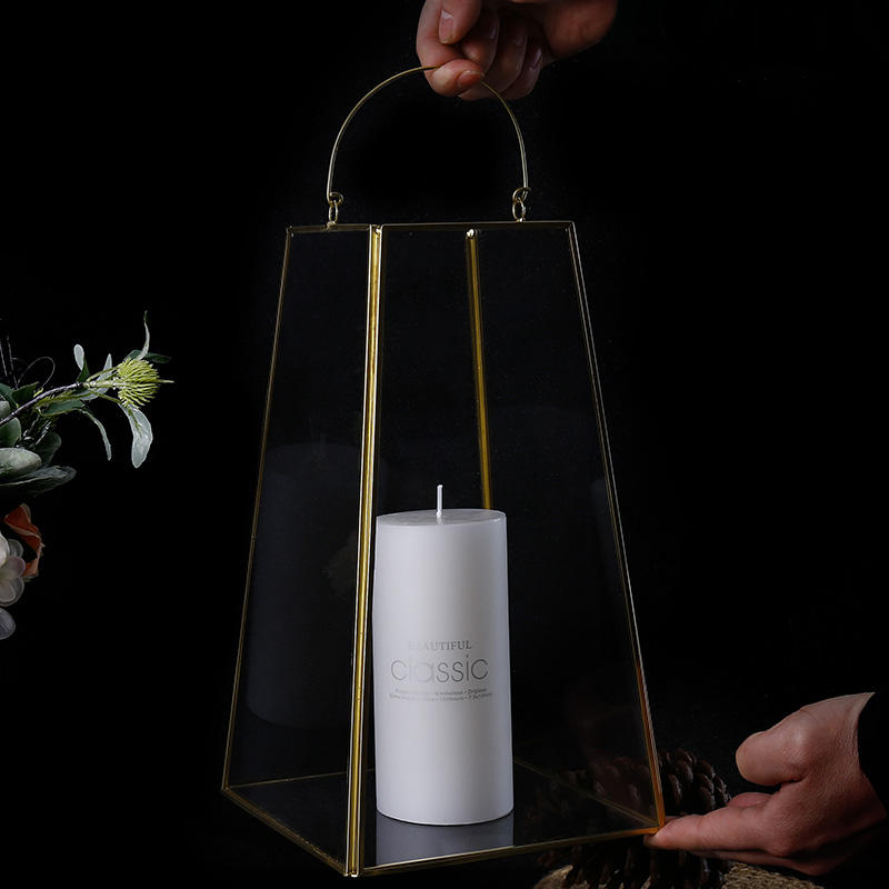 Vetro trapezoidale in metallo lanterna geometrica appesa terrario interno/esterno piantatrice a secco per la tavola di arredamento per la casa