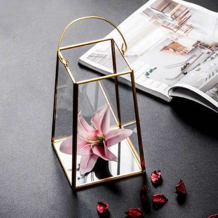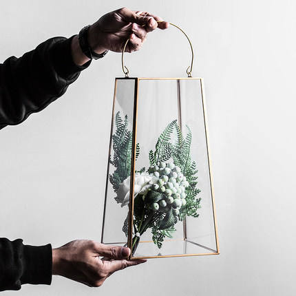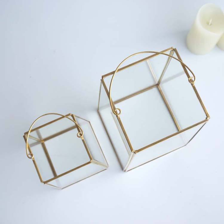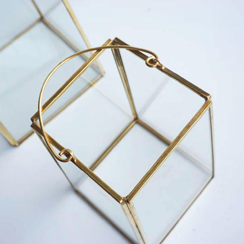 Portacandele Geometrico in Ferro e Vetro a Forma di Trapezio, Terrario Sospeso, Centrotavola per Interni ed Esterni, Vaso Decorativo