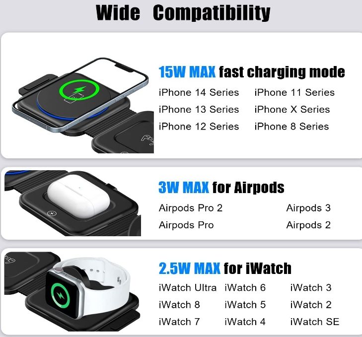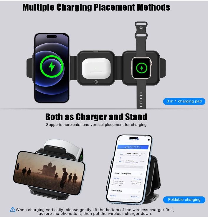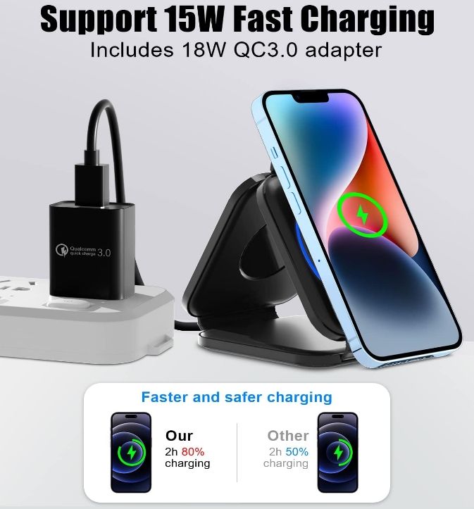 Elettrico, Caricatore senza fili, Adattatore di Alimentazione, Adattatore universale, 3 in 1 Stazione di Ricarica Senza Fili, Magnetico, Fast charger