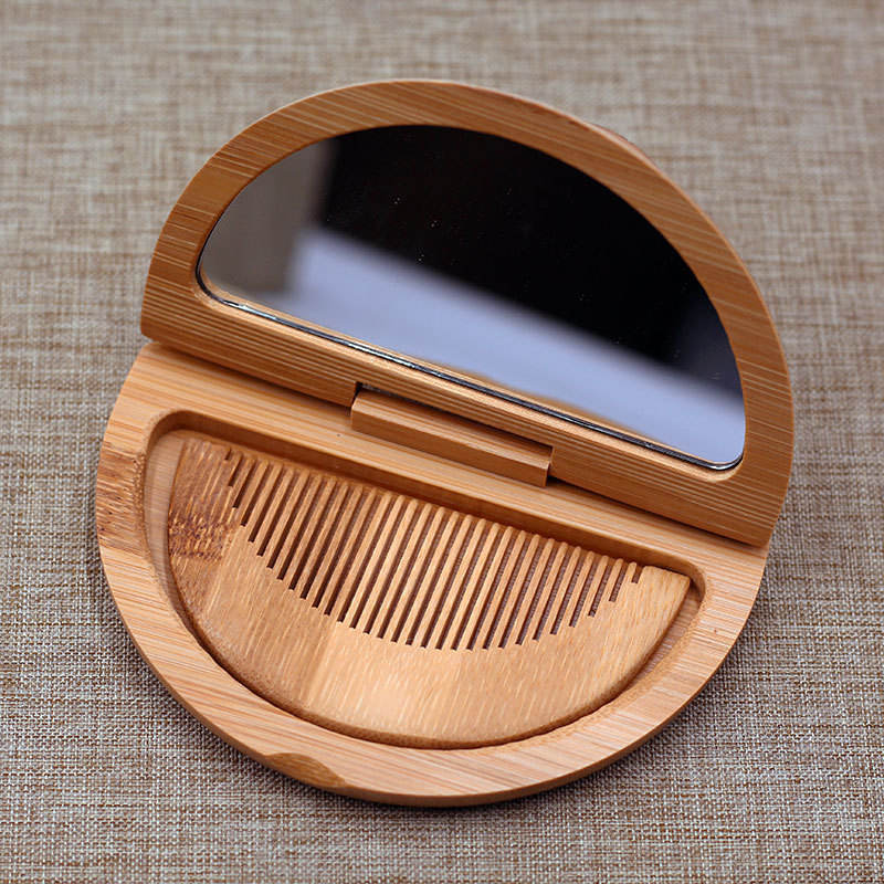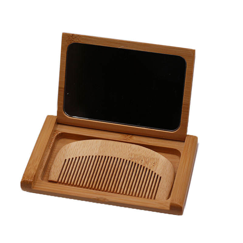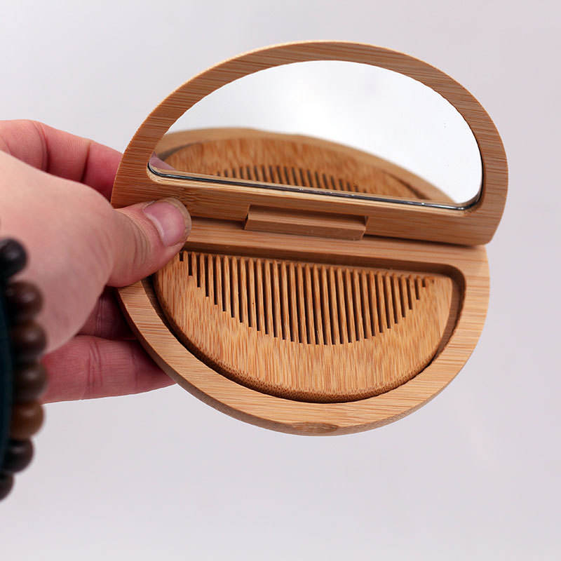 Set Regalo per la Cura dei Capelli Personalizzabile con Pettine in Bambù Compatto e Portatile con Specchio per Uomini e Donne