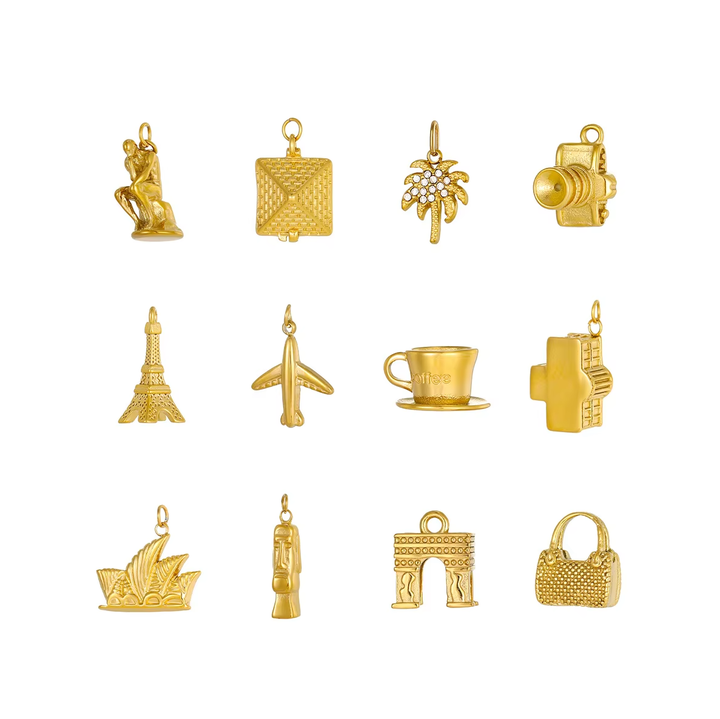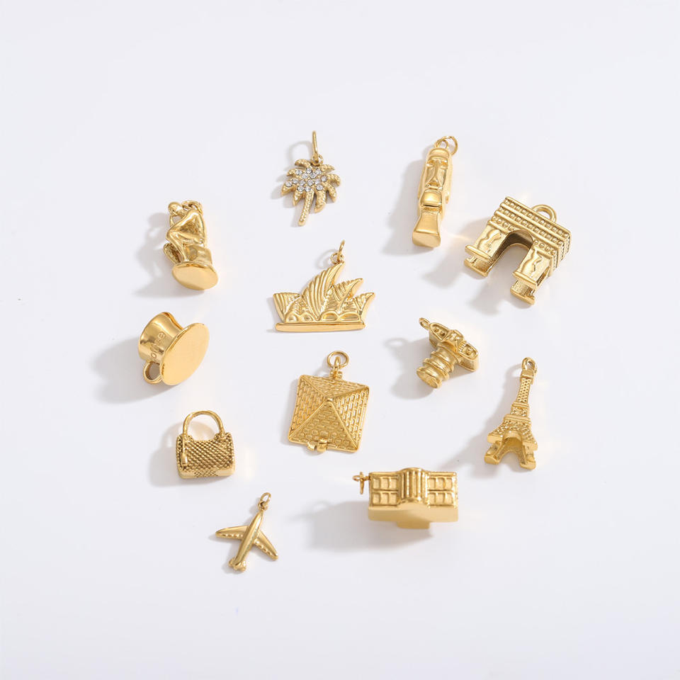 Travel & Landmark Charms | 18K PVD Gold Plated Stainless Steel Charms for DIY Jewelry Making | Journey & World Icons Pendants