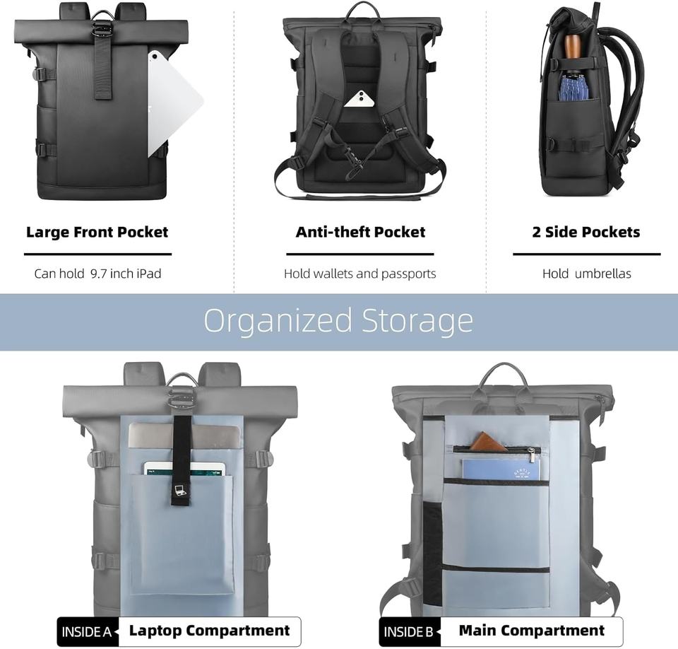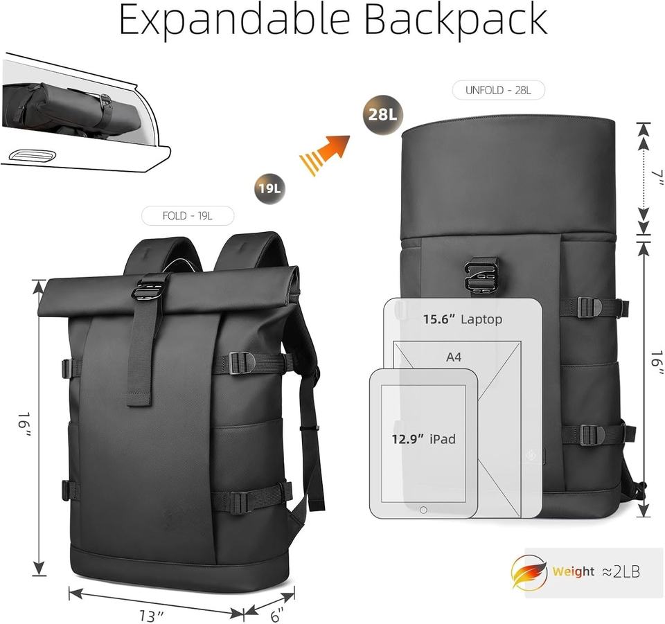 Zaino da Viaggio Arrotolabile per Voli, Zaini per Laptop Approvati per Uomo e Donna, Borsa da Viaggio d'Affari per Aerei
