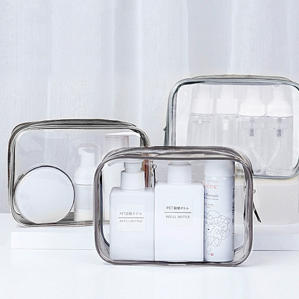 Borsa da Viaggio per Organizzare Articoli da Toeletta, Pochette Impermeabile per Trucchi, Borsa da Toilette Femminile Portatile Trasparente con Cerniera in PVC