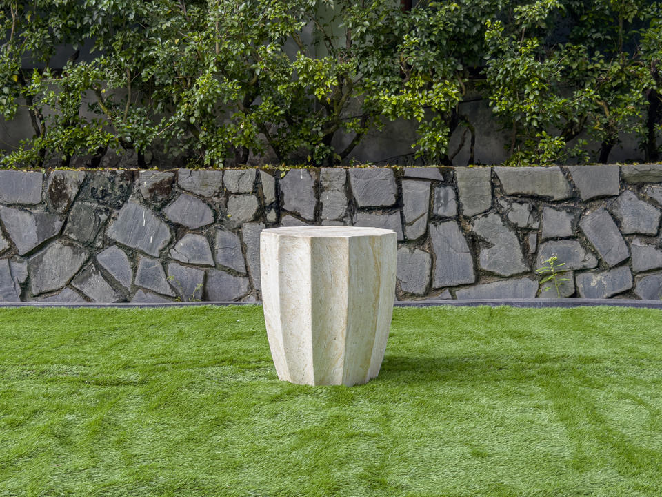 Tavolino in cemento travertino Carambola moderno Design organico per spazi di vita contemporanei