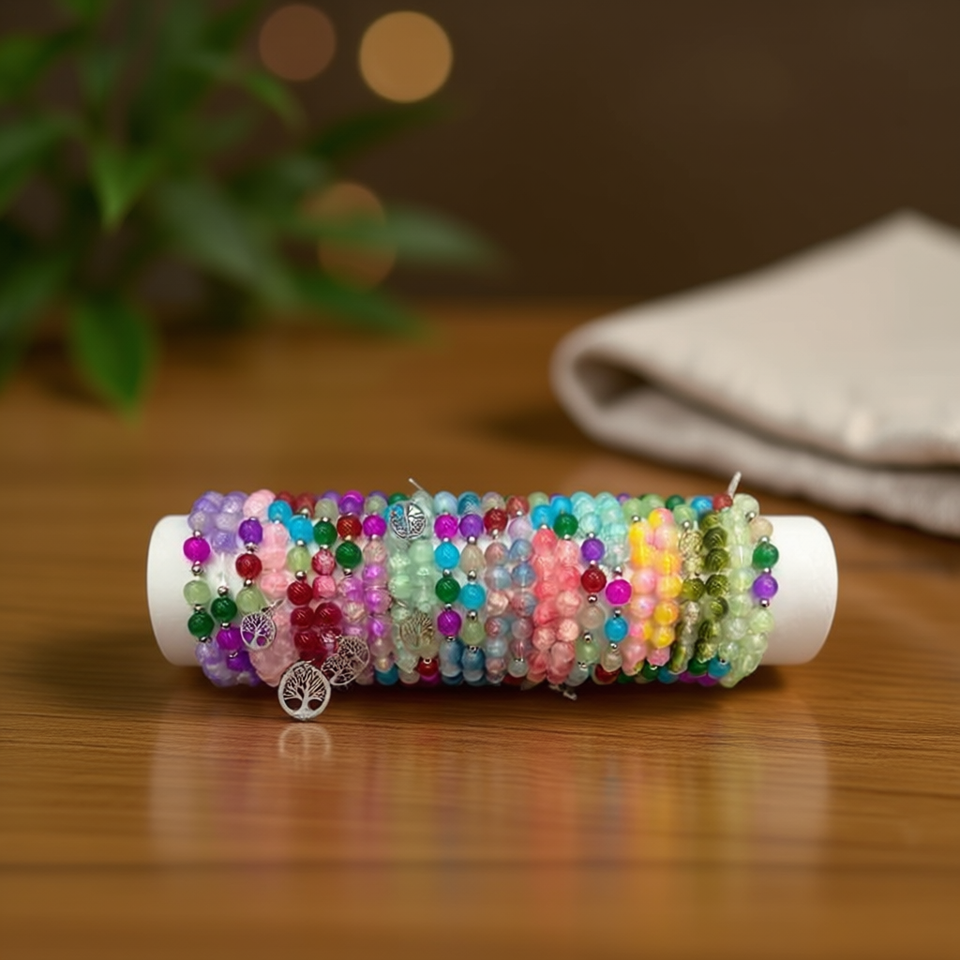 Braccialetto con Ciondolo Albero della Vita in Vetro, 24 Pezzi, Bracciali Artigianali alla Moda in Acciaio Inossidabile con Perline