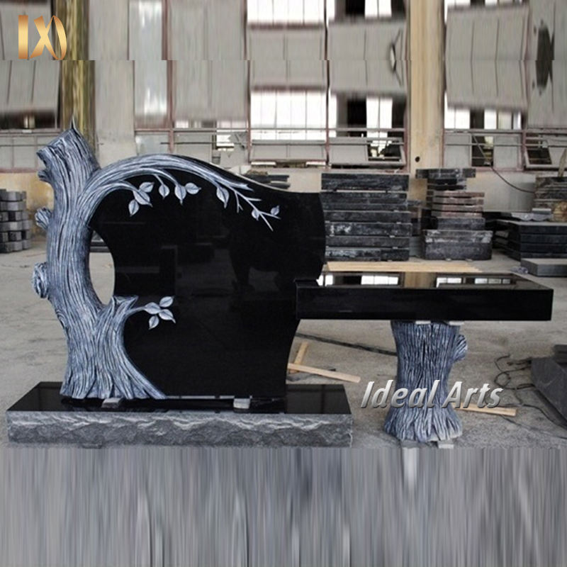 Tree of Life Black Granite Headstone Custom Engraved Photo Memorial Tombstone for Cemetery