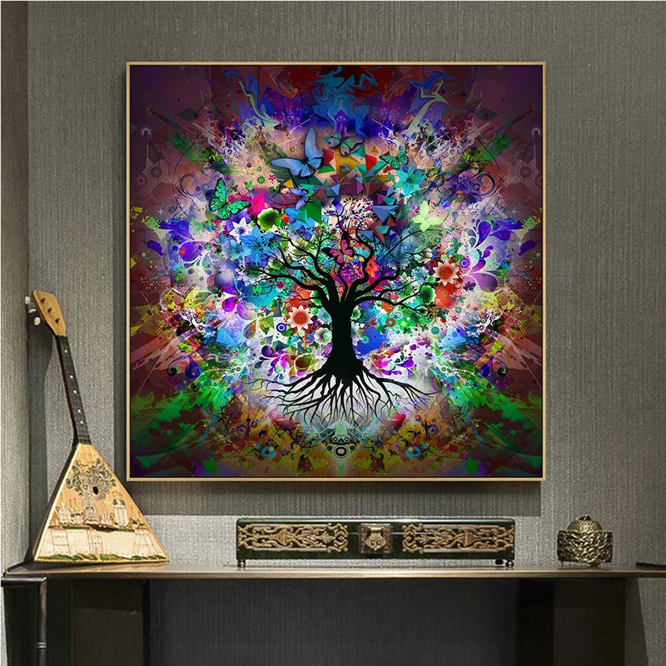 Decoration:Painting Abstract Art Embroidery Cross Tree