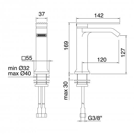 Treemme Ios doppio manico contemporanea lavabo rubinetto termostatico rubinetto acqua calda e fredda lavandino con attacco a foro singolo