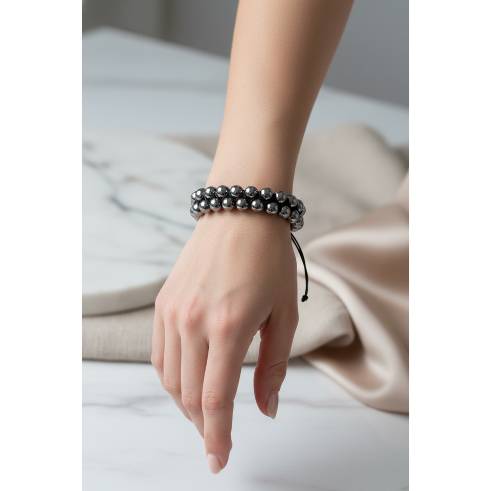 Trehartz 8mm Double Row Macrame Natural Stone Bracelet