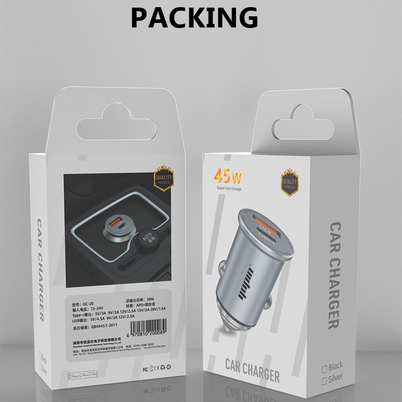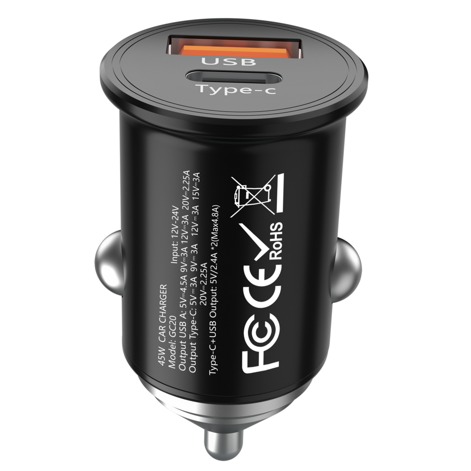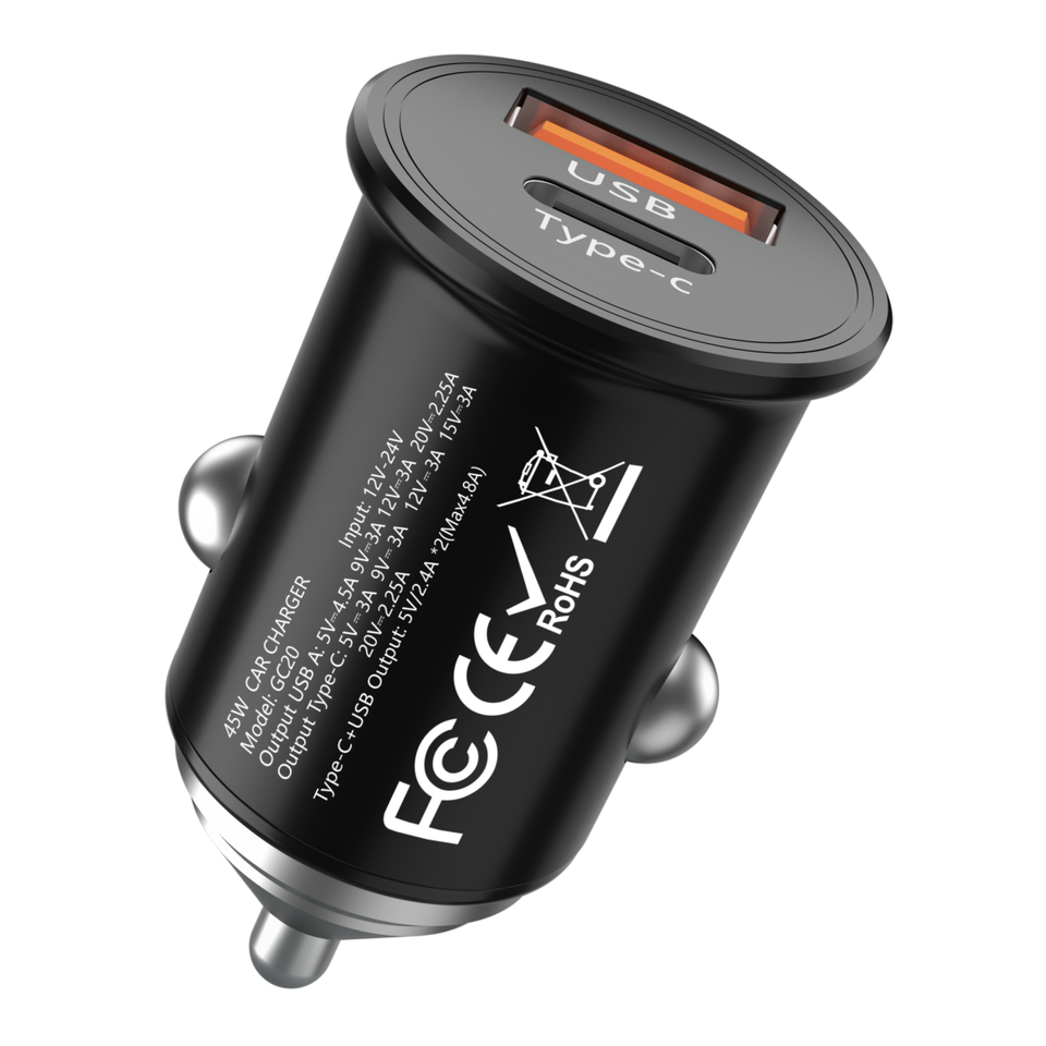 Tendenza 45W QC3.0 PD 3.0 ricarica rapida per auto 5V/3A 20W USB tipo C tutto in metallo Mini SCP telefono cellulare veloce 5V/3A 20W USB tipo C