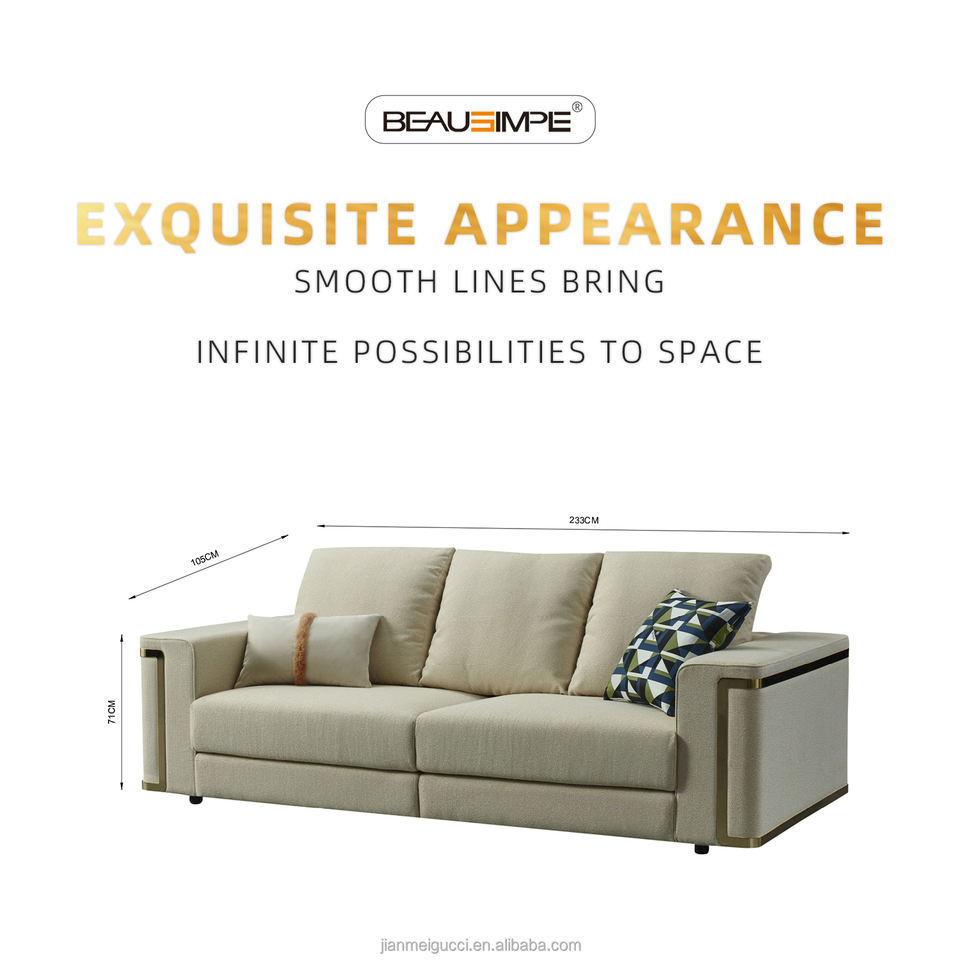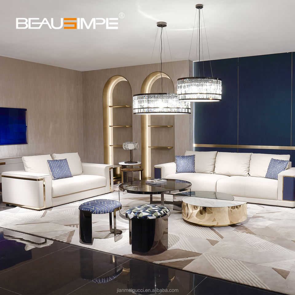 Divano di tendenza per il lusso moderno classico stile regale dorato arredamento per la casa con cuscino morbido imbottito in vera pelle