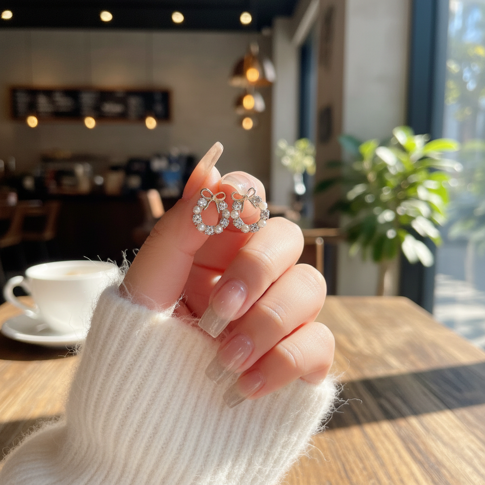 Trending Fashion Geometric Pearl Silver Korean Style Earring Set Elegant Girls Jewelry Hot Sale Wholesale