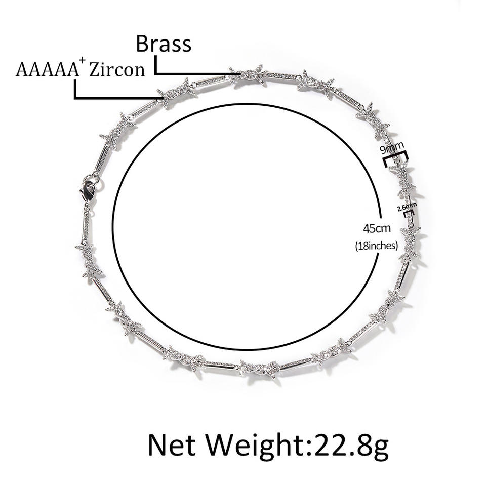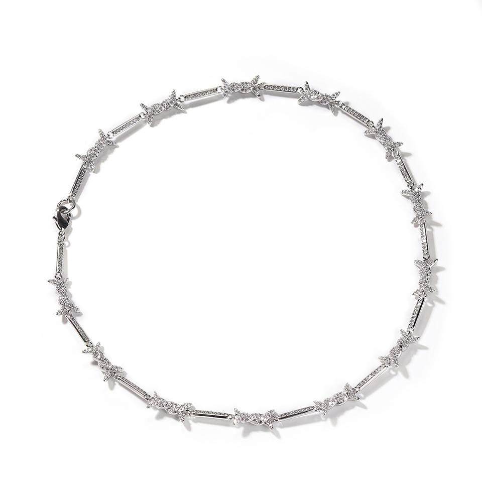 Trending Jewelry New Arrivals Hip Hop Personalized Thorn Necklace 2.6mm Barbed Wire Chain Brass Zircon Infinity Necklace for Men