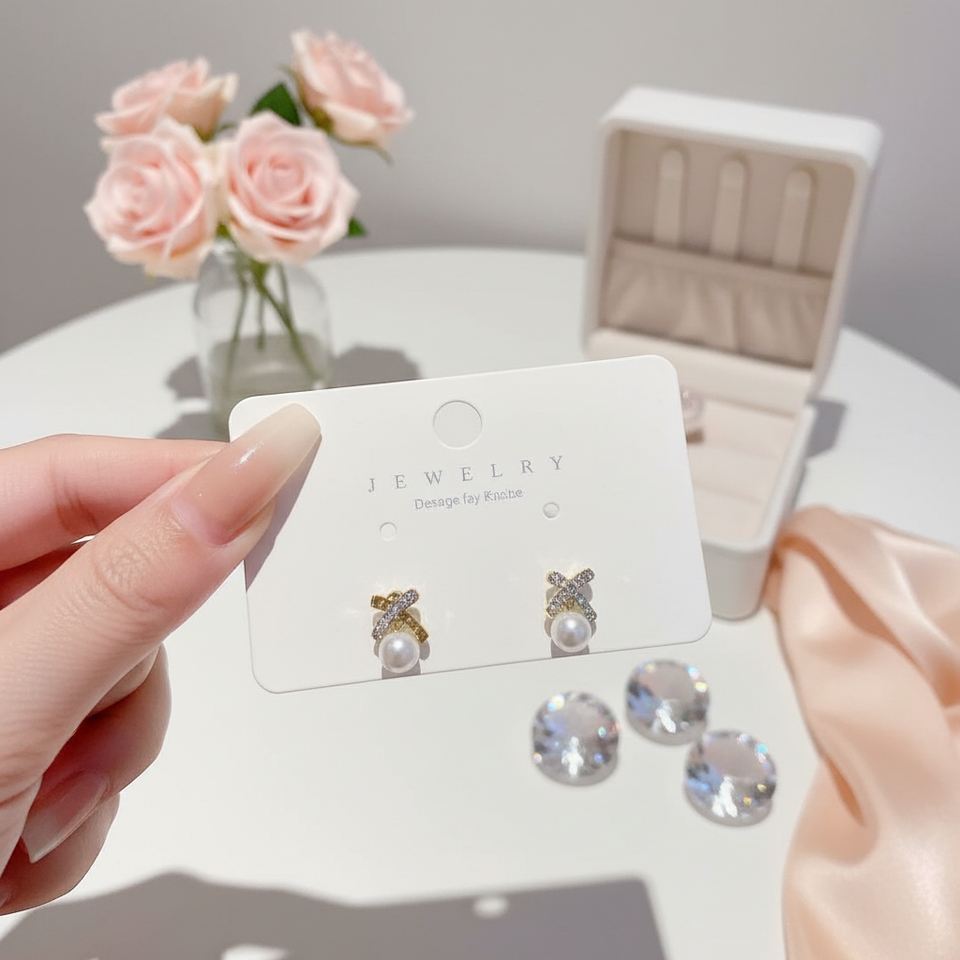 Orecchini a Perno con Fiocco e Cristalli in Stile Coreano di Tendenza, Gioielli Eleganti e alla Moda per Ragazze, Vendita Calda all'Ingrosso