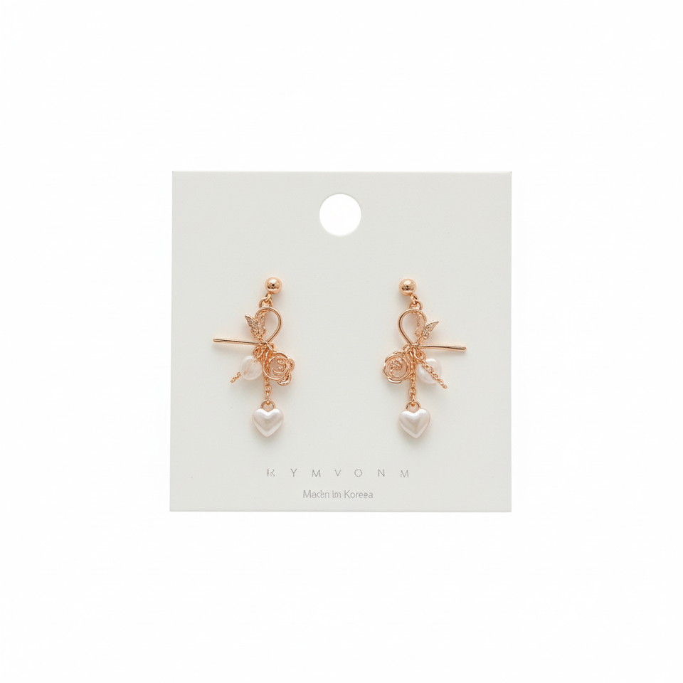 Trending Vintage guscio religioso cuore farfalla oro rosa lampadario orecchini vendita calda all'ingrosso borchie alla moda oro rosa