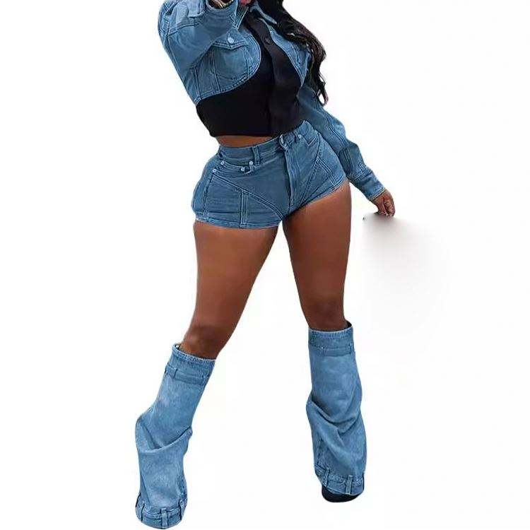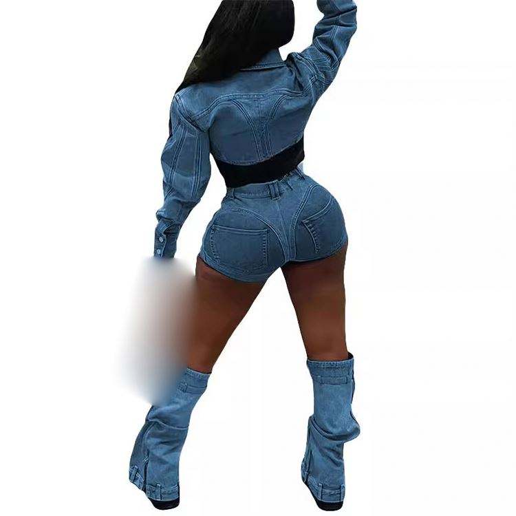Trending Women Cotton Jeans Summer Denim Two Pieces Shorts Set Outfit Clothing