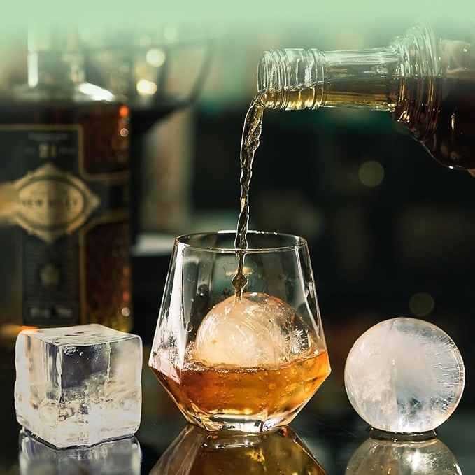 Stampo per Cubetti di Ghiaccio in Silicone 2 in 1, Forma Quadrata e Sferica, Trasparente, Ideale come Regalo per Uomini