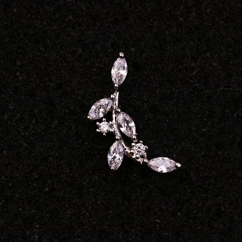 Trendy 20g Stainless Steel Plug Tunnel Barbell Left/Right Sides Leaf CZ Ear Piercing Tragus Helix Orbital Screw Back Stud Gift