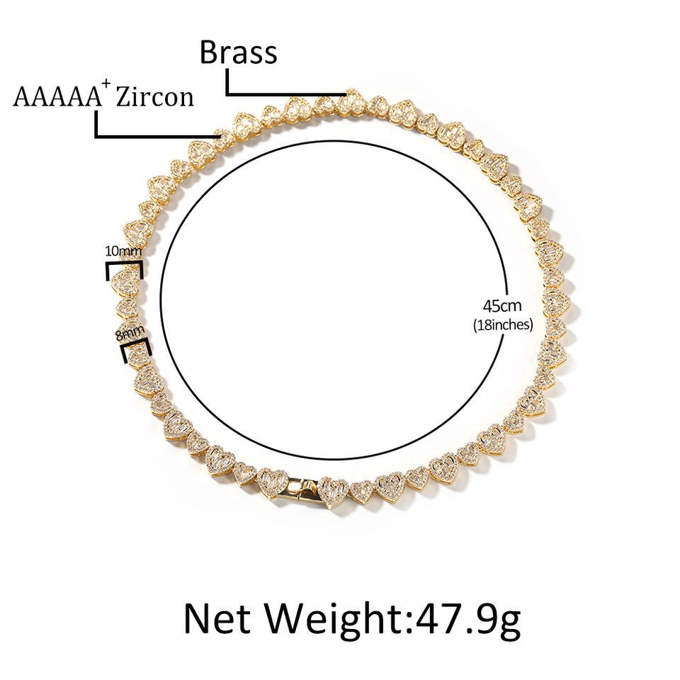 Trendy Baguette CZ Heart Necklace Large and Small Hearts Bracelet Fashion Jewelry for Women Man