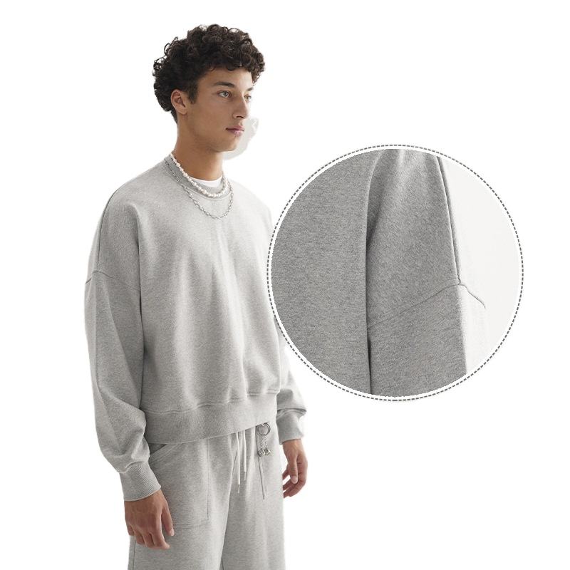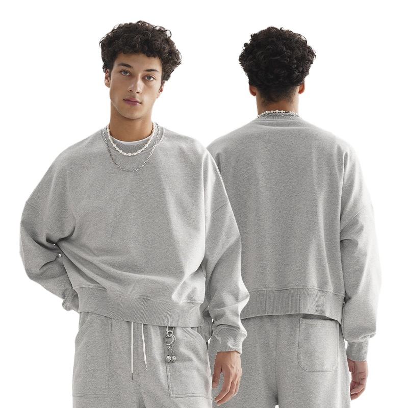 Trendy Brand Men's Casual Sweatshirt 100% Cotton Knitted Short Wide Round Neck Heavy Loose Fit Printed Pattern High Quality