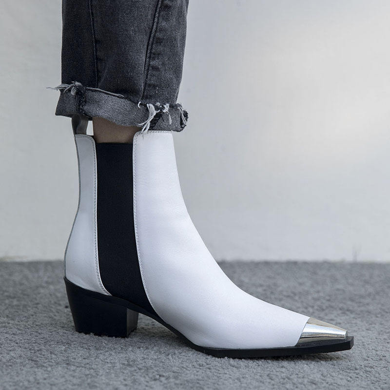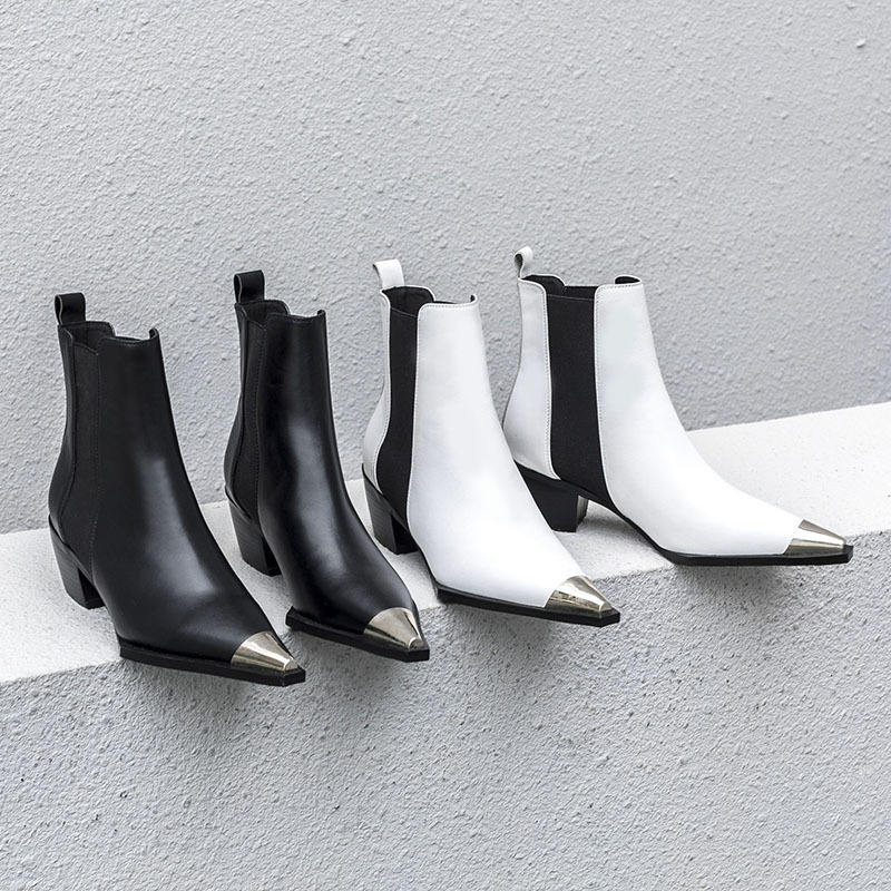 Trendy Brand Women Boots White and Black Color Europe Popular Young Girl Ankle Boots