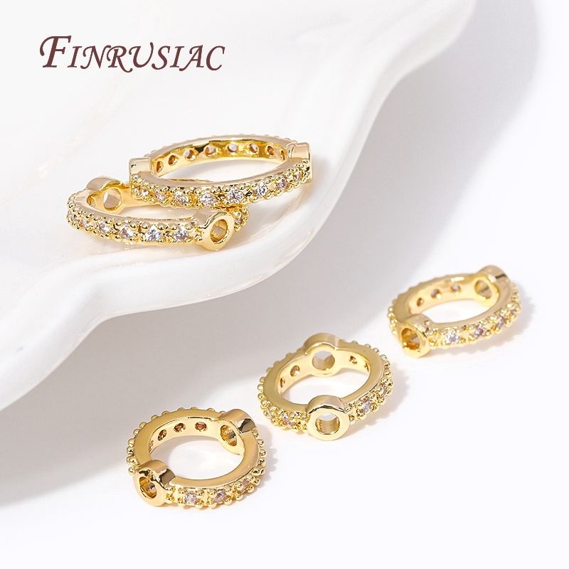 Trendy Brass with Zircon Circle Bead Frames 18K Gold Plated Metal Through Hole Bead Frame Connectors DIY Jewelry Making Supplies