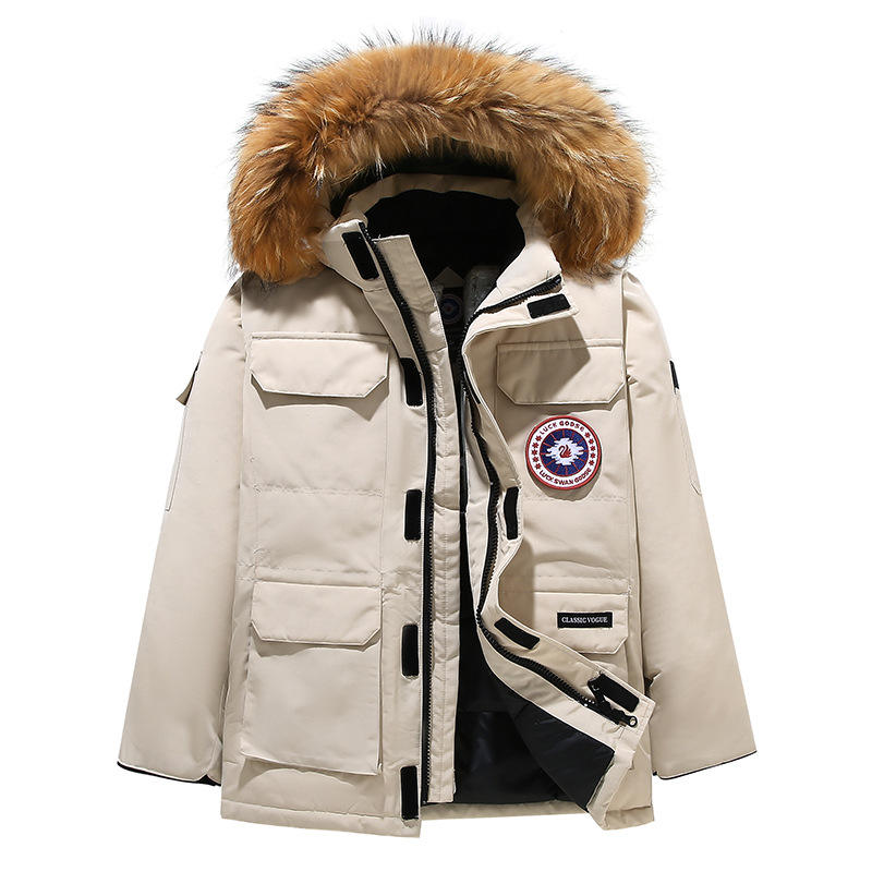 Piumino da Uomo Di Tendenza in Stile Canadese con Cappuccio, Parka Alla Moda con Ampio Collo di Pelliccia, Cappotto Spesso e Caldo, Stesso Modello Unisex per Coppia