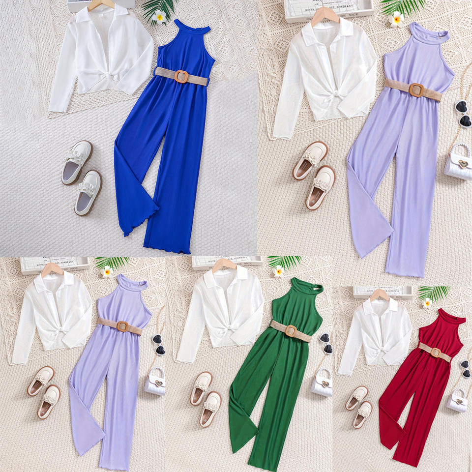 Trendy Casual Children's Jumpsuit Set Spring Summer Halter Neck Jumpsuit Jacket Two-Piece Girls' Clothing