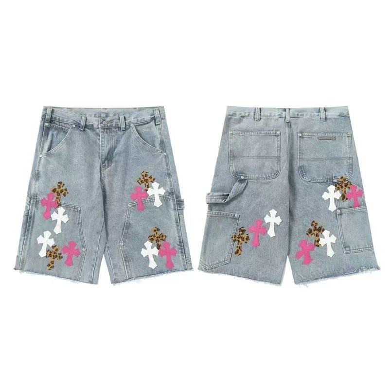 Pantaloncini da Uomo Trendy in Pelle con Ricamo a Croce, Lusso Leggero, Vestibilità Ampia e Versatile, Gamba Dritta, Lunghezza al Ginocchio
